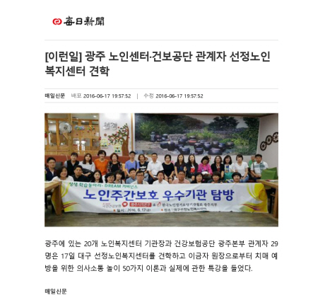 16.06.17광주 노인센터·건보공단 관계자 선정노인복지센터 견학