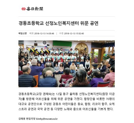 18.12.13경동초등학교 선정노인복지센터 위문 공연