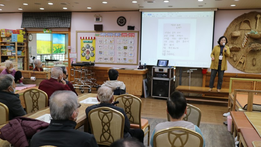 4월 15일 특화 프로그램 페이지 정보 작성자최고관리자 댓글 0건 조회 559회 작성일 23-07-05 14:04 본문 '노년기 자아통합 증진을 위한 이야기치료'라는 제목으로 어르신들을 위해 원장님(이금자 사회복지학박사)께서 직접 특화프로그램을 진행하였습니다. 목록 이전글5월 8일 어버이날 행사 23.07.05 다음글4월 6일 미술활동 23.05.11