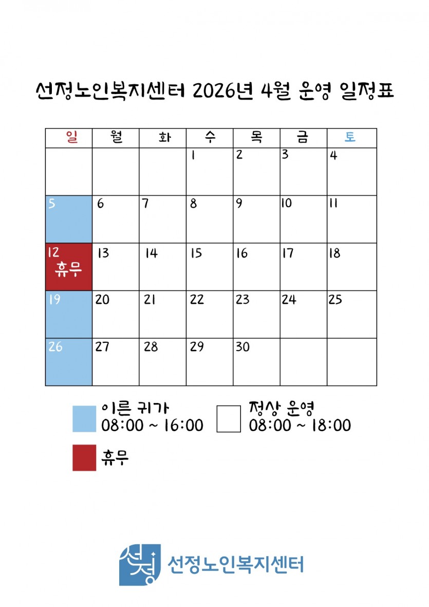 2026년 4월 휴무일 안내 입니다. .