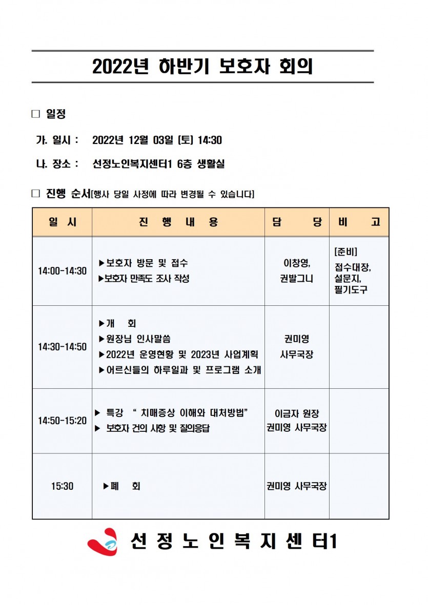 2022년도 하반기 보호자 회의를 개최하고자 합니다.