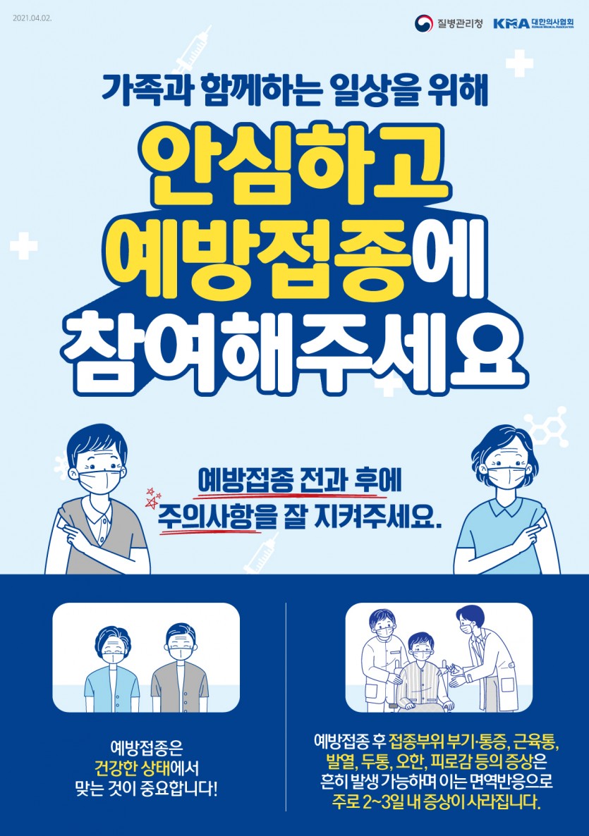 가족과 함께하는 일상을 위해 안심하고 예방접종에 참여해주세요.