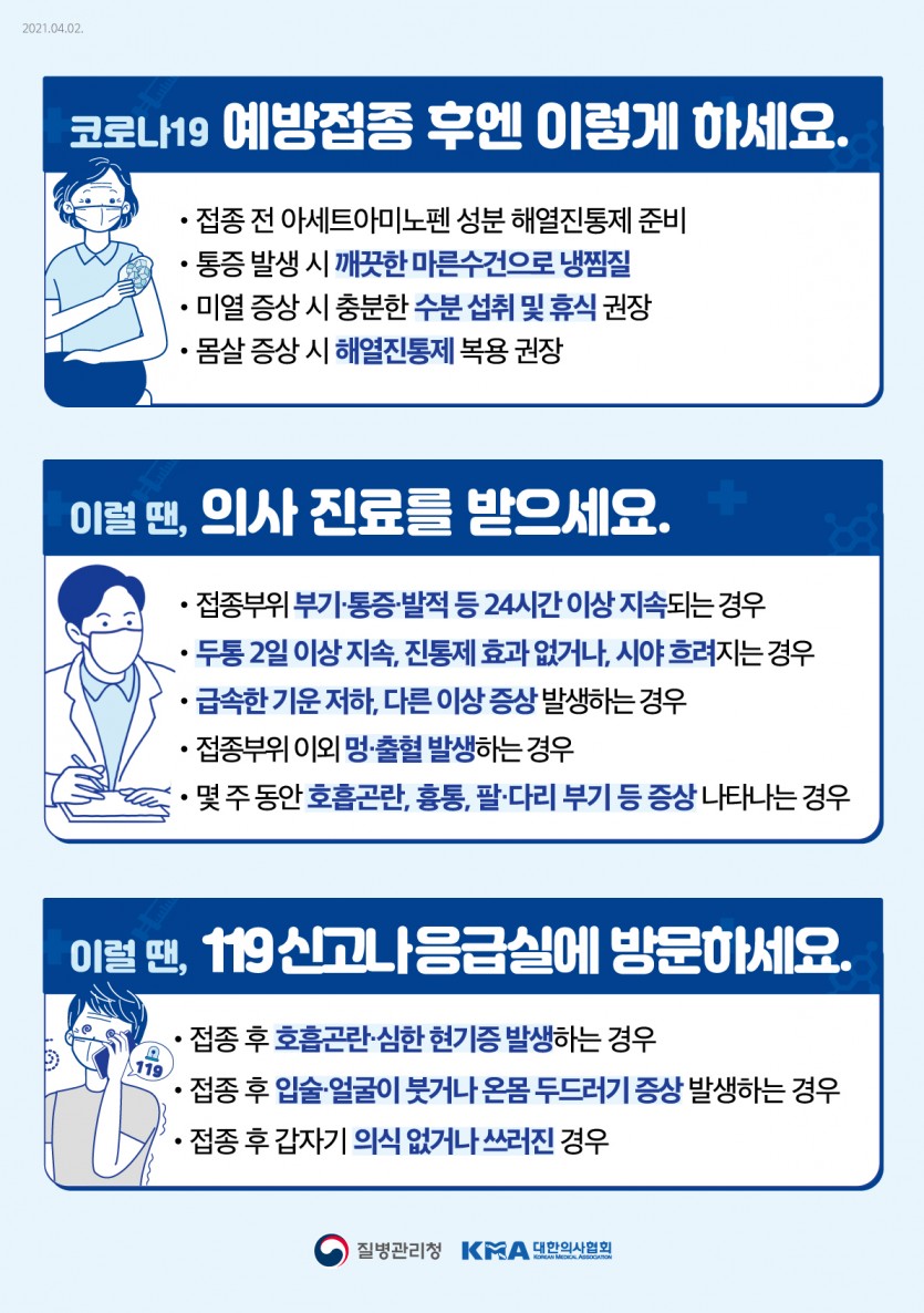 코로나19 예방접종 후엔 이렇게 하세요.