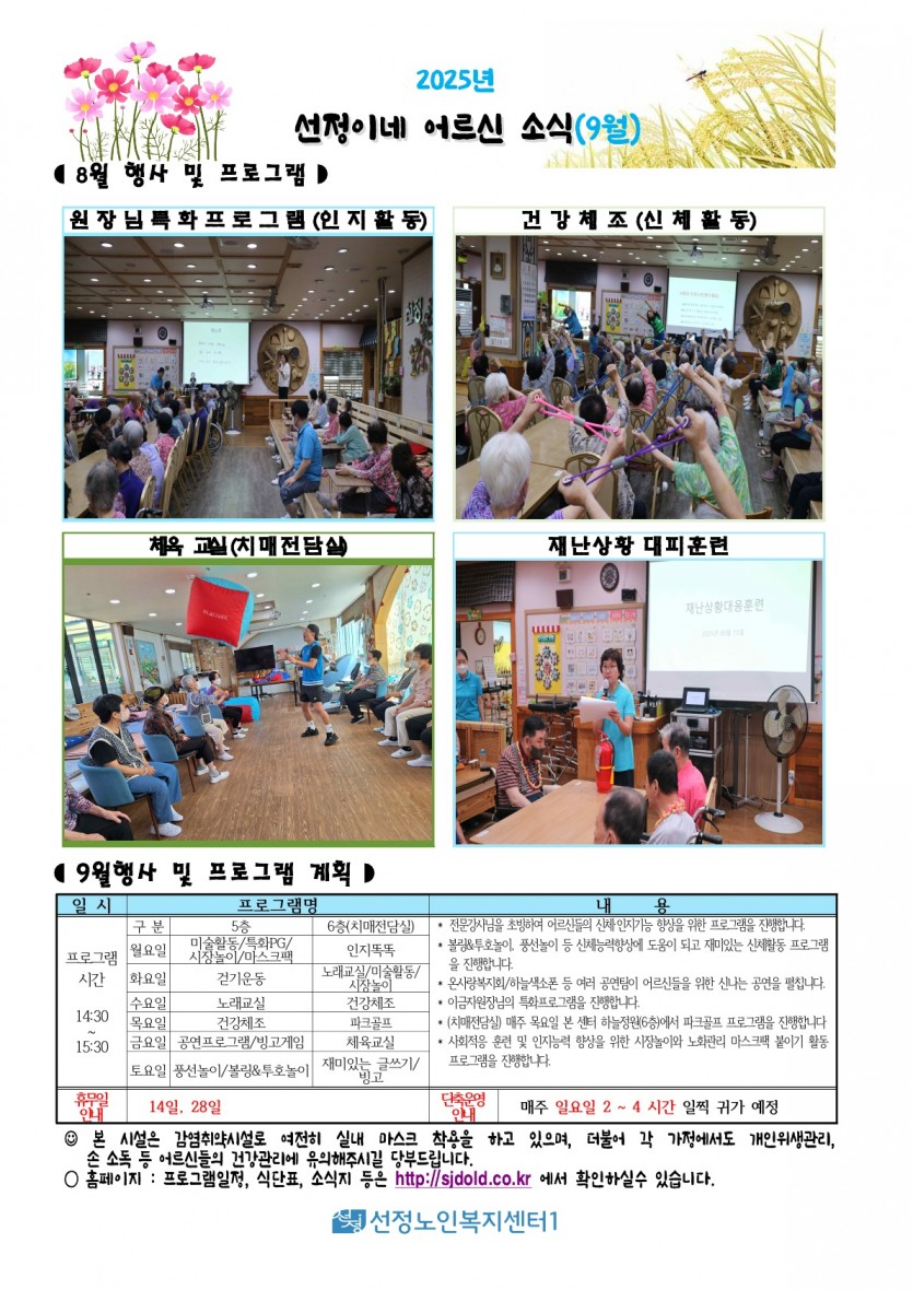 2025년 9월 식단표 및 소식지 페이지 정보 작성자 최고관리자 댓글 0건 조회 429회 작성일 25-08-31 11:54 본문 2025년 9월 식단표 및 소식지 입니다. 목록 이전글2025년 10월 휴무일 안내 25.09.24 다음글2025년 9월 치매전담실 프로그램 운영표 25.08.31