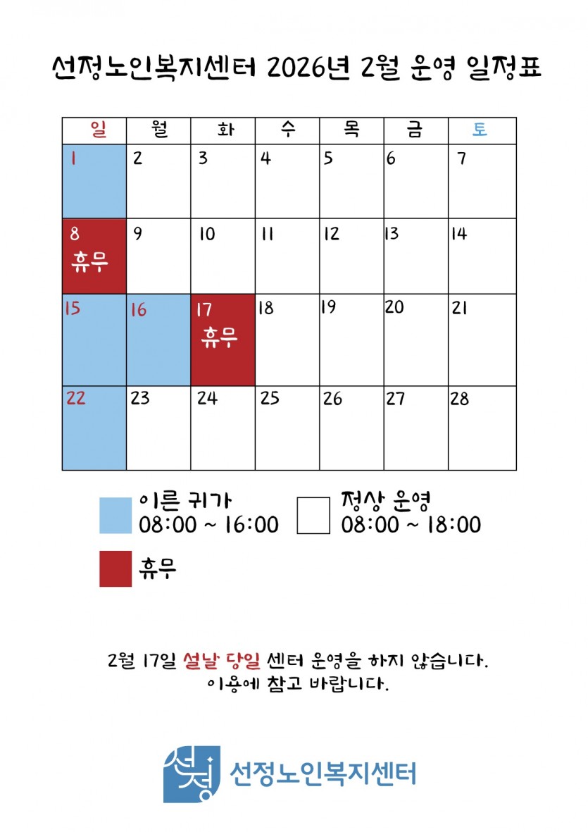 2026년 2월 휴무일 안내 입니다. .